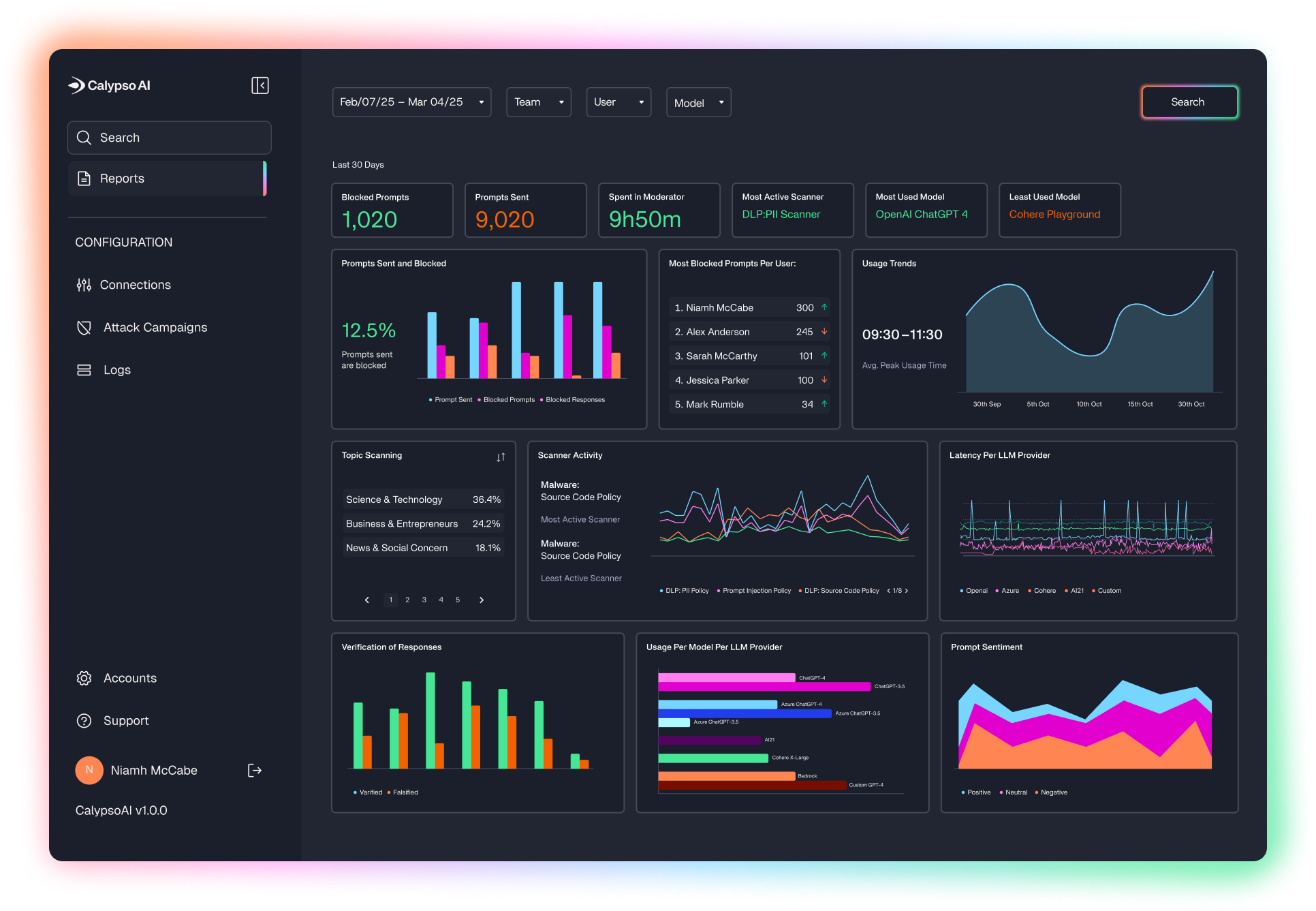 - Monitors AI security, usage, and vulnerabilities in real-time.