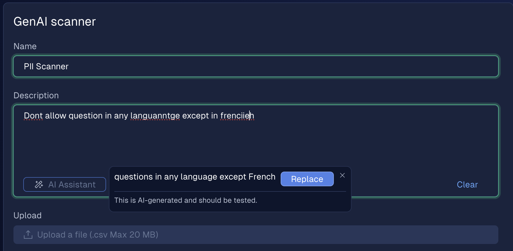 This month’s release brings some of our most impactful updates yet: an AI Assistant to help you build better scanners, powerful new redaction capabilities, and the latest Red-Team attack pack with a new threat vector that targets LLM reasoning. Together, these enhancements give enterprises more precision in defending their AI and more depth in stress-testing it against real-world adversaries.